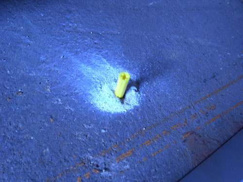 壁を立てる位置の墨出しと、ランナーを固定するためプラグの埋め込み。
